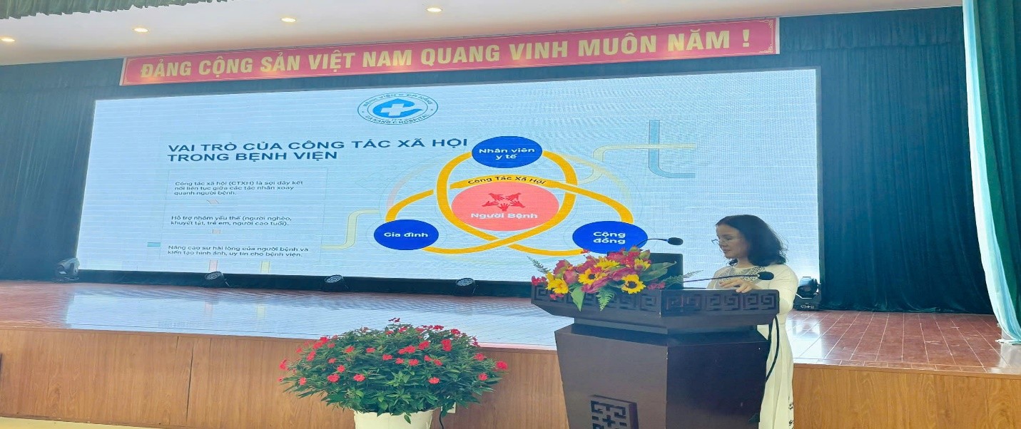Phát biểu tại buổi lễ, BSCKII Nguyễn Trọng Thiện, Bí thư Đảng ủy-Giám đốc Bệnh viện ghi nhận và đánh giá cao những đóng góp của công tác xã hội trong hỗ trợ người bệnh, kết nối nguồn lực và nâng cao chất lượng dịch vụ y tế. Đồng thời nhấn mạnh định hướng phát triển công tác xã hội theo hướng chuyên nghiệp, hiệu quả, nhân văn, lấy người bệnh làm trung tâm.
