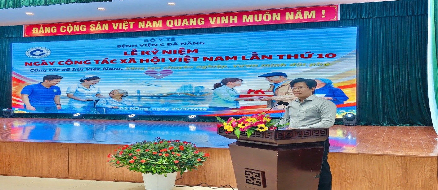 Chiều 25/3/2026, Bệnh viện C Đà Nẵng trang trọng tổ chức Lễ kỷ niệm Ngày Công tác xã hội Việt Nam lần thứ 10 (25/3/2016 – 25/3/2026), đây là sự kiện ý nghĩa nhằm tôn vinh những đóng góp thầm lặng nhưng đầy ý nghĩa của đội ngũ những người làm công tác xã hội nói chung và trong ngành Y tế nói riêng.