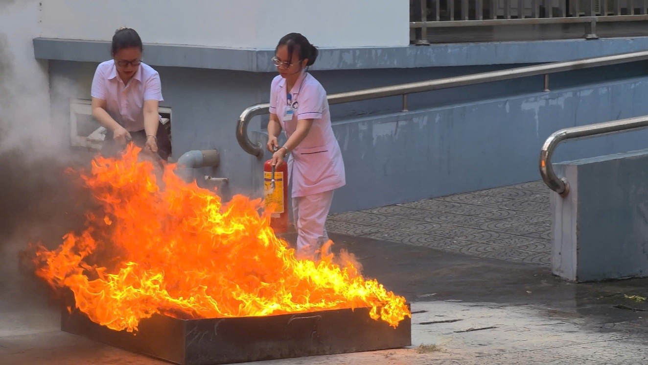 Tại buổi tập huấn, các cán bộ, nhân viên Bệnh viện đã được phổ biến các văn bản pháp luật mới về PCCC và CNCH có hiệu lực năm 2025; được cập nhật những quy định, tiêu chuẩn an toàn trong công tác phòng cháy chữa cháy tại cơ sở y tế. Bên cạnh đó, lực lượng chức năng đã hướng dẫn cụ thể cách nhận diện nguy cơ cháy nổ, quy trình xử lý khi xảy ra sự cố, các biện pháp thoát nạn an toàn trong môi trường bệnh viện có đông người và nhiều thiết bị kỹ thuật.Ngoài phần lý thuyết, các cán bộ, viên chức và người lao động còn trực tiếp tham gia thực hành phương án chữa cháy và cứu nạn, cứu hộ tại chỗ, bao gồm: sử dụng bình chữa cháy xách tay, triển khai đội hình chữa cháy ban đầu, tổ chức di chuyển người bệnh, tài sản ra khỏi khu vực nguy hiểm và phối hợp với lực lượng chuyên nghiệp khi có tình huống phát sinh.