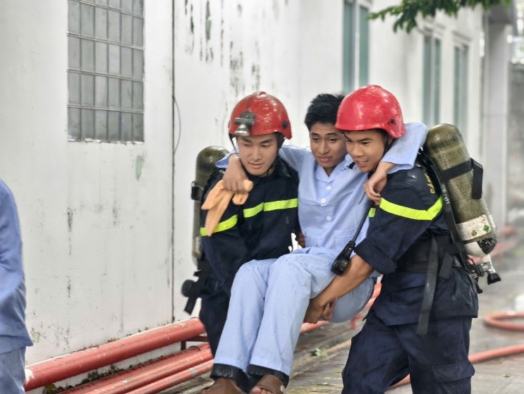 Tình huống giả định: Do bất cẩn trong sử dụng thiết bị diện dẫn đến chập điện tại phòng bệnh tầng 3, Khoa Nội thận thuộc Khu nhà số 5 (nhà 11 tầng). Đám cháy bùng phát nhanh trên bề mặt các chất dễ bắt cháy và khói của đám cháy bao trùm lên toàn bộ phòng điều trị và lan sang các khu vực xung quanh.