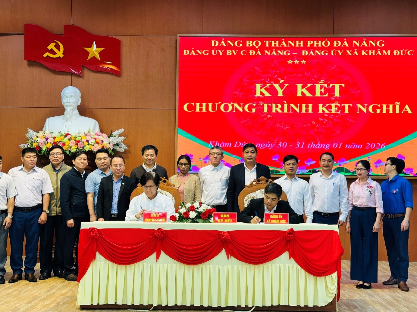 Ngày 30-31/01/2026 Đảng uỷ Bệnh viện C Đà Nẵng và Đảng uỷ xã Khâm Đức, thành phố Đà Nẵng tổ chức Lễ ký kết Chương trình công tác kết nghĩa giữa hai đơn vị. Đây là hoạt động triển khai thực hiện Nghị quyết số 02-NQ/TU ngày 29/7/2025 của Thành ủy Đà Nẵng về chủ trương kết nghĩa giữa các phường, xã trên địa bàn thành phố nhằm hỗ trợ nhau phát triển toàn diện và phục vụ tốt nhất, nâng cao chất lượng đời sống của Nhân dân; Quyết định số 3139/QĐ-UBND ngày 24/12/2025 của Ủy ban nhân dân thành phố về kết nghĩa giữa các sở, ban, ngành; cơ quan, đơn vị với 33 xã miền núi, biên giới, hải đảo trên địa bàn thành phố.