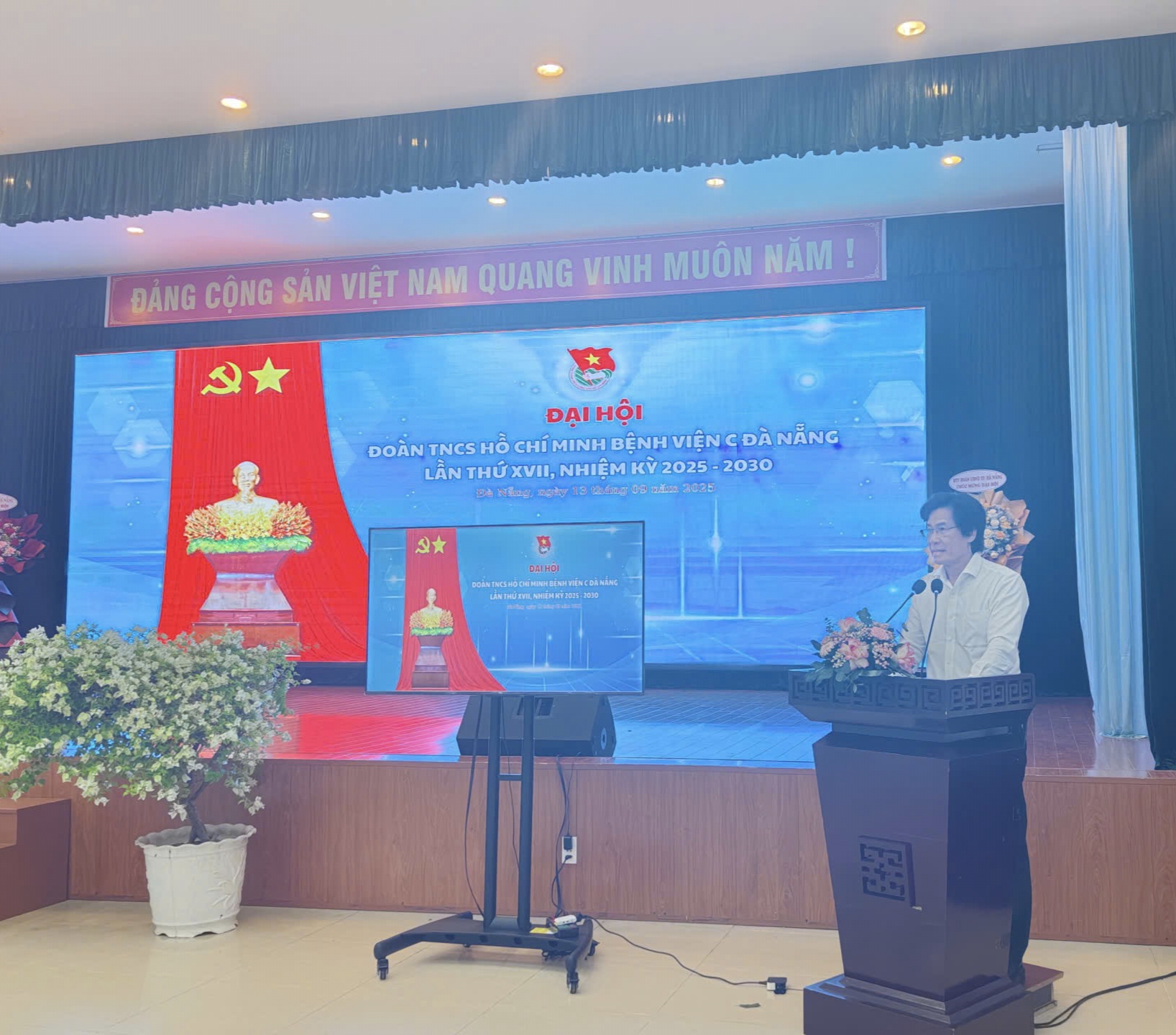Trong không khí trang trọng và nhiệt huyết, đồng chí Nguyễn Trọng Thiện, Bí thư Đảng ủy, Giám đốc Bệnh viện C Đà Nẵng đã có bài phát biểu chúc mừng và chỉ đạo sâu sắc. Đồng chí ghi nhận những đóng góp to lớn của tuổi trẻ Bệnh viện trong nhiệm kỳ qua, đồng thời nhấn mạnh vai trò tiên phong của Đoàn Thanh niên trong việc thực hiện các nhiệm vụ chuyên môn, không ngừng học tập, nâng cao tay nghề để đáp ứng yêu cầu của ngành y tế hiện đại. Đoàn thanh niên Bệnh viện C Đà Nẵng cần phải thực sự vững mạnh, trưởng thành, trở thành trụ cột của đội ngũ Y tế số. Tuổi trẻ Bệnh viện phải quyết tâm cao, tiên phong trong chuyển đổi số, ứng dụng trí tuệ nhân tạo vào công tác thường ngày, nghiên cứu khoa học, góp phần cùng bệnh viện thực hiện hiệu quả Nghị quyết số 57-NQ/TW ngày 22/12/2024 của Bộ Chính trị về đột phá phát triển khoa học, công nghệ, đổi mới sáng tạo và chuyển đổi số quốc gia.