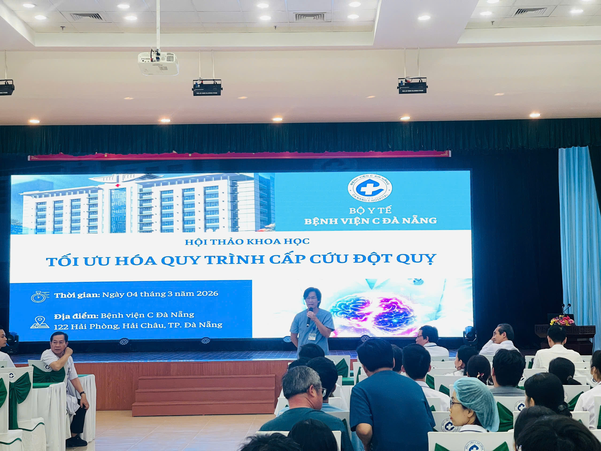 Chiều 04/3/2026, Bệnh viện C Đà Nẵng đã tổ chức thành công Hội thảo khoa học với chủ đề “Tối ưu hóa quy trình cấp cứu đột quỵ”, sụ kiện với sự tham gia của các đại biểu là bác sĩ, dược sĩ, điều dưỡng, kỹ thuật viên toàn viện cùng nhân viên y tế ngoài viện quan tâm đến lĩnh vực đột quỵ.
