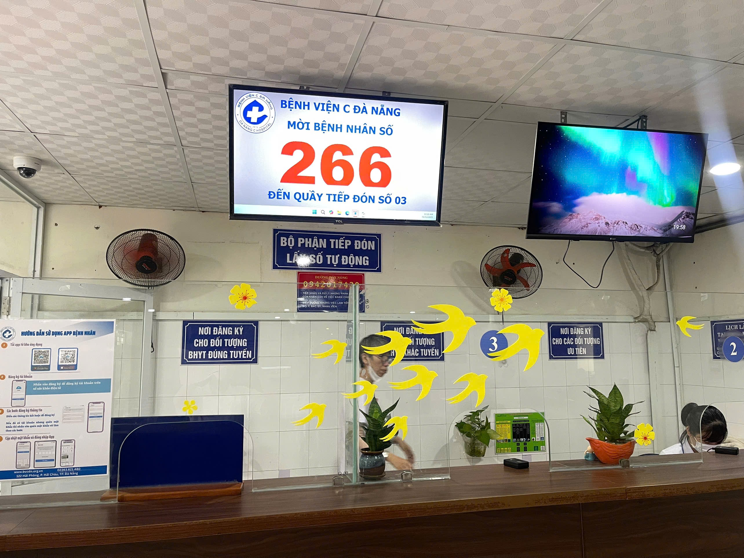 Màn hình LED sẽ hiển thị số phiếu, nhân viên tại khu tiếp đón sẽ gọi số, ví dụ: “Mời bênh nhân số 266 đến quầy số 3 (Hình 5). Bạn chỉ cần chờ đến khi số trên phiếu trùng với số hiển thị trên màn hình.